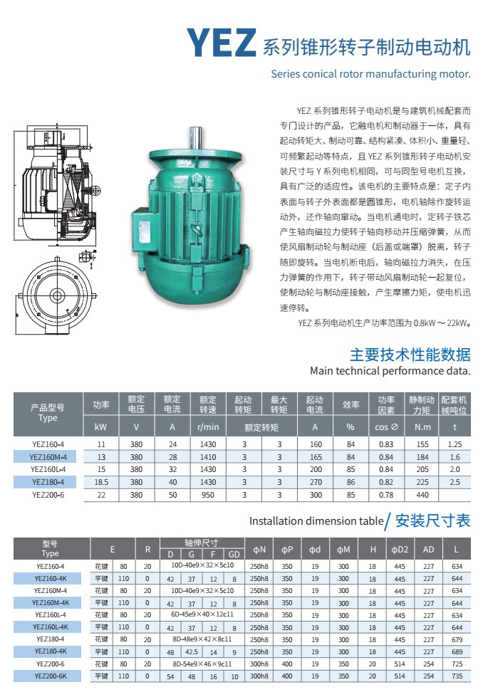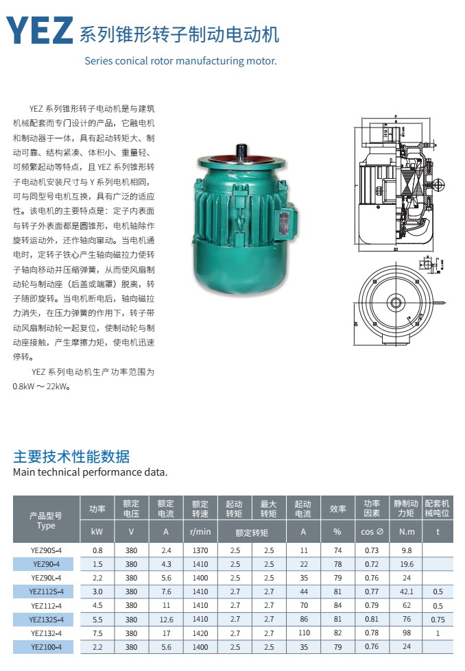 YEZ系列錐形轉(zhuǎn)子制動電動機(jī)